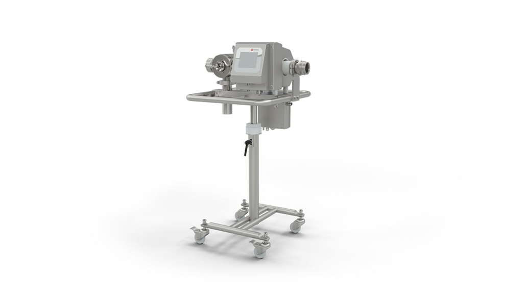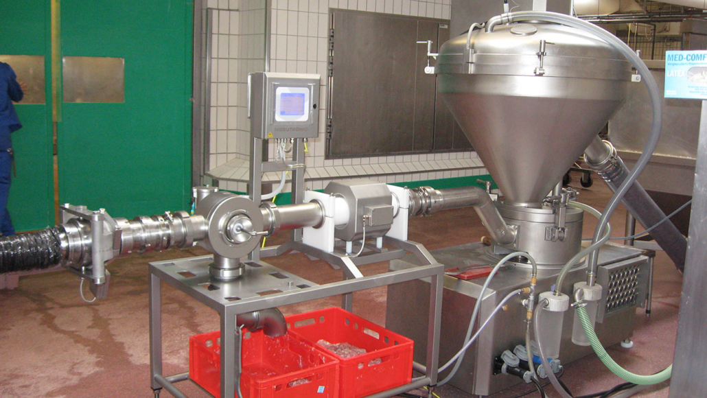 Metal separators of the MEATLINE 07 O series are connected to the outlet of vacuum fillers in sausage production. Mechanical connections for all common sausage and ham fillers are available, as well as electronic control adapters for signal exchange between the filler, metal detector and subsequent systems such as clippers or linkers.