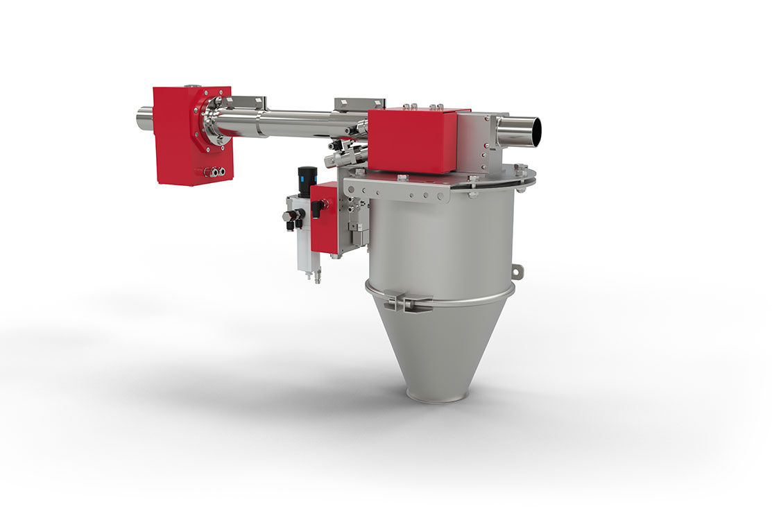 Metal separators of the P-TRON 03 FM type are used for the examination of granulates or ground material in intermittent suction conveyor lines. Versions for horizontal and vertical installation, as well as for high product temperatures after the dryer, are available. The P-TRON 05 GM is available for continuous suction conveyor lines or pressure conveyor lines. Crimping valves and rotary flaps replace the pendulum flap of the P-TRON 03 FM here.